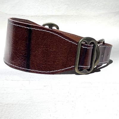 Obroża dla charcika włoskiego, wykonana ze skory z mosiężną ozdobą