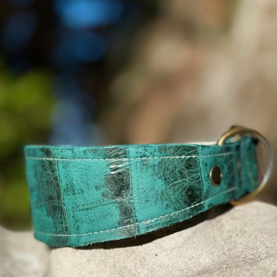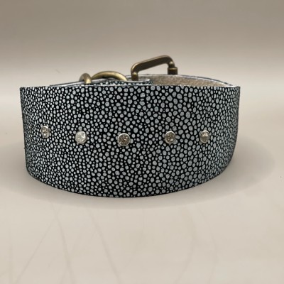 Obroża z pięknej włoskiej skóry ,wzór wąż ,pokryty delikatnym brokatem