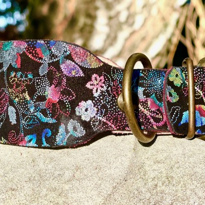 Obroża z matowej włoskiej skóry – delikatne kwiaty