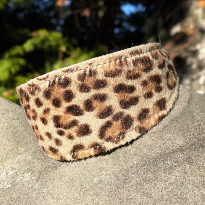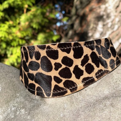 Obroża z włoskiej skóry, z delikatnym włosem,wzor panterka