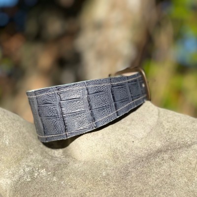 Obroża z włoskiej skóry w tłoczone wzory geometryczne
