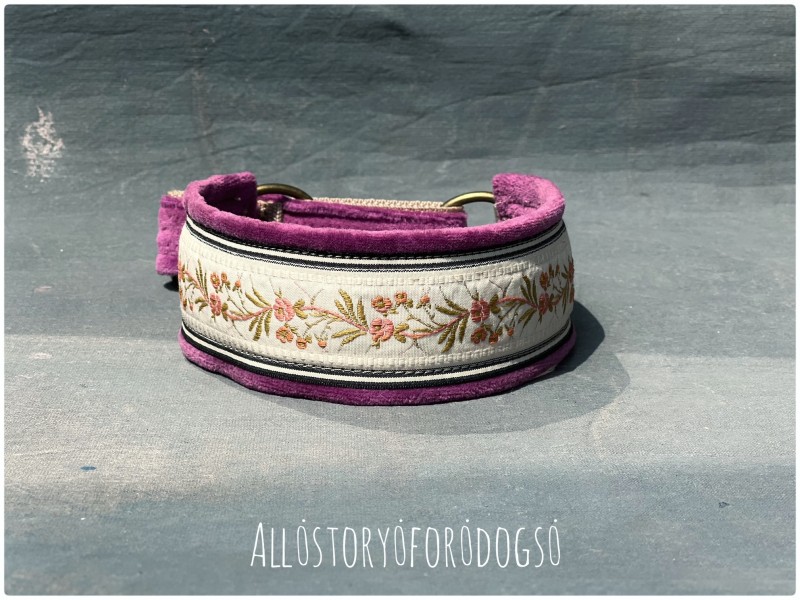 Limitowana seria obroży na różowym welurze z orientalnymi taśmami. Wybierz spośród 3 wzorów. Ręcznie wykonane, eleganckie i komfortowe – idealne dla Twojego psa.