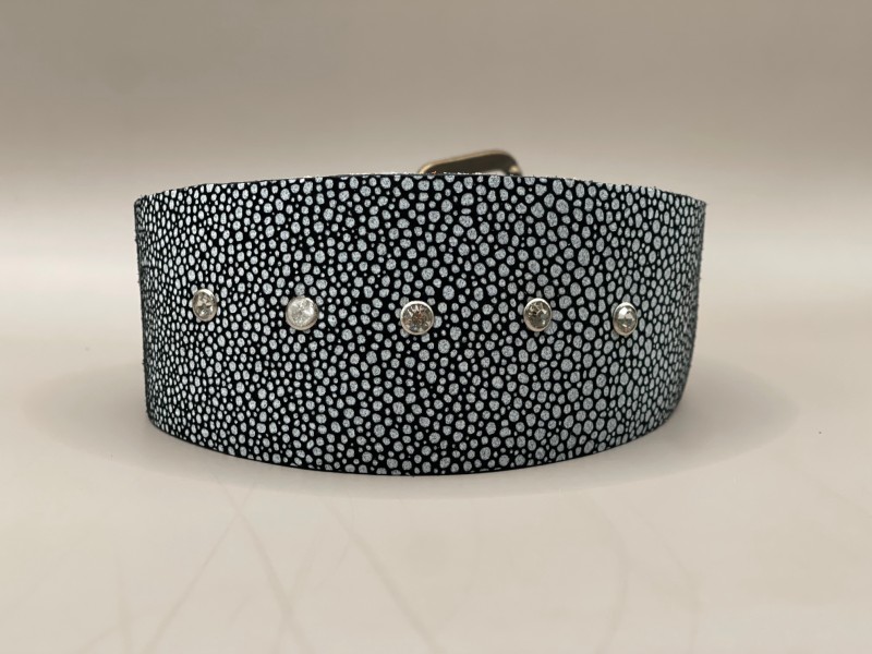 Obroża z miękkiej, włoskiej skóry ozdobiona cyrkoniami