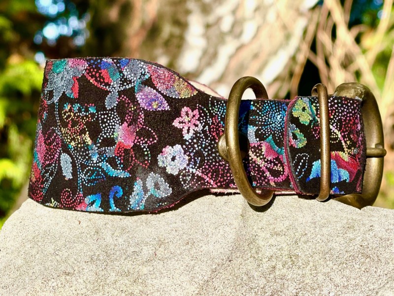 Obroża z miękkiego zamszu ,fluorescencyjne kwiaty ,