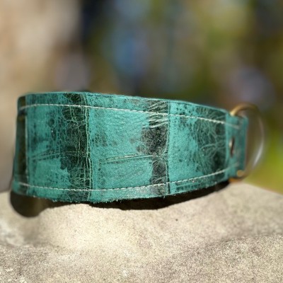 Obroża z włoskiej skóry w kolorze głębokiego turkusu