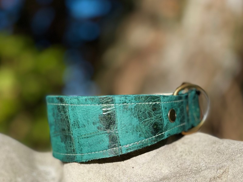 Obroża z włoskiej skóry w kolorze głębokiego turkusu