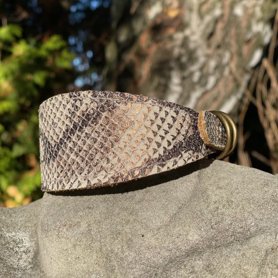 Obroża z pięknej włoskiej skóry ,wzór wąż ,pokryty delikatnym brokatem