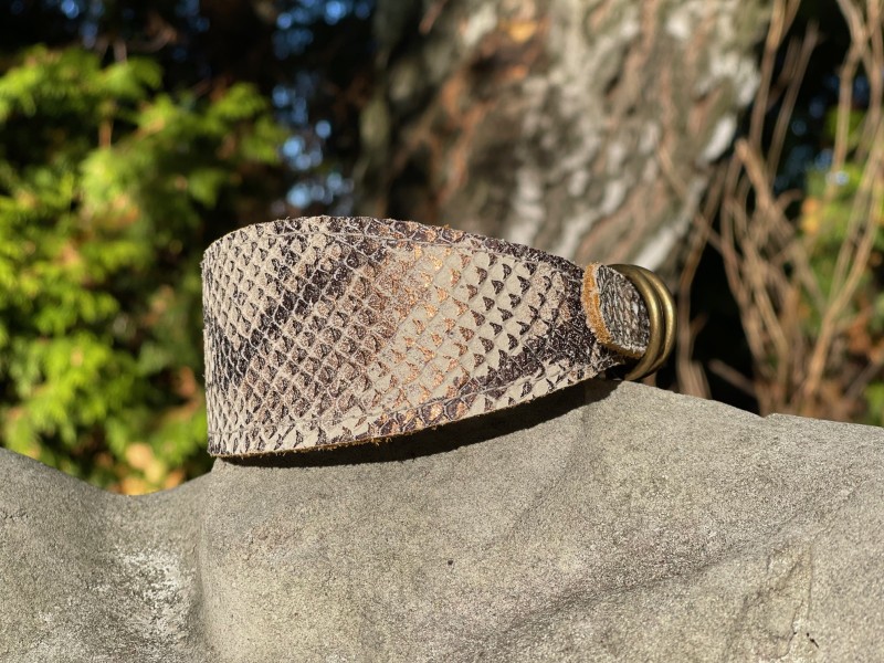 Obroża z pięknej włoskiej skóry ,wzór wąż ,pokryty delikatnym brokatem