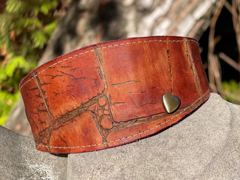 Obroża dla charcika włoskiego, wykonana ze skory z mosiężną ozdobą