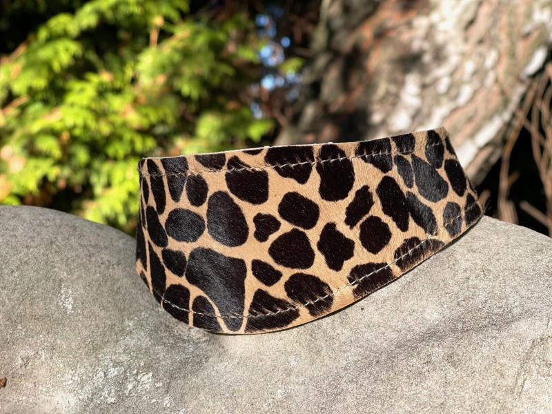 Obroża z włoskiej skóry ,z delikatnym włosem,