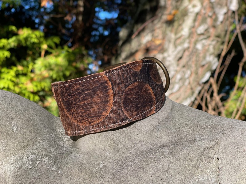 Obroża z włoskiej skóry w tłoczone wzory geometryczne