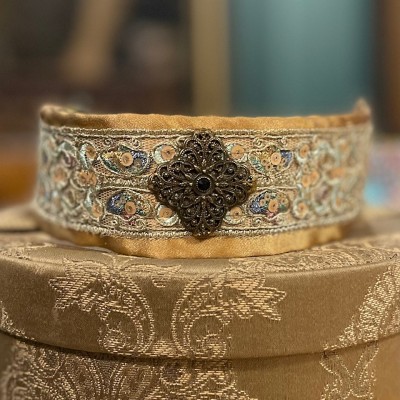 Obroża w wykonana z atłasu ,naszyta pięknie zdobiona orientalna taśma,na przodzie unikatowy medalion