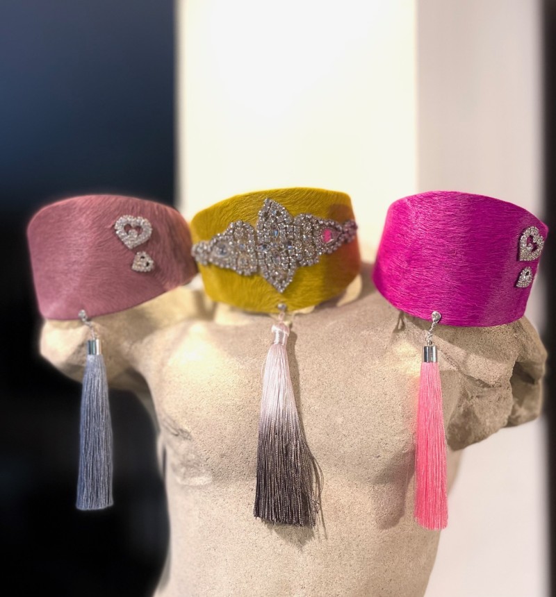 Obroża z włoskiej skóry ,z delikjatnym włosem ,niezwykle ekstrawagancka