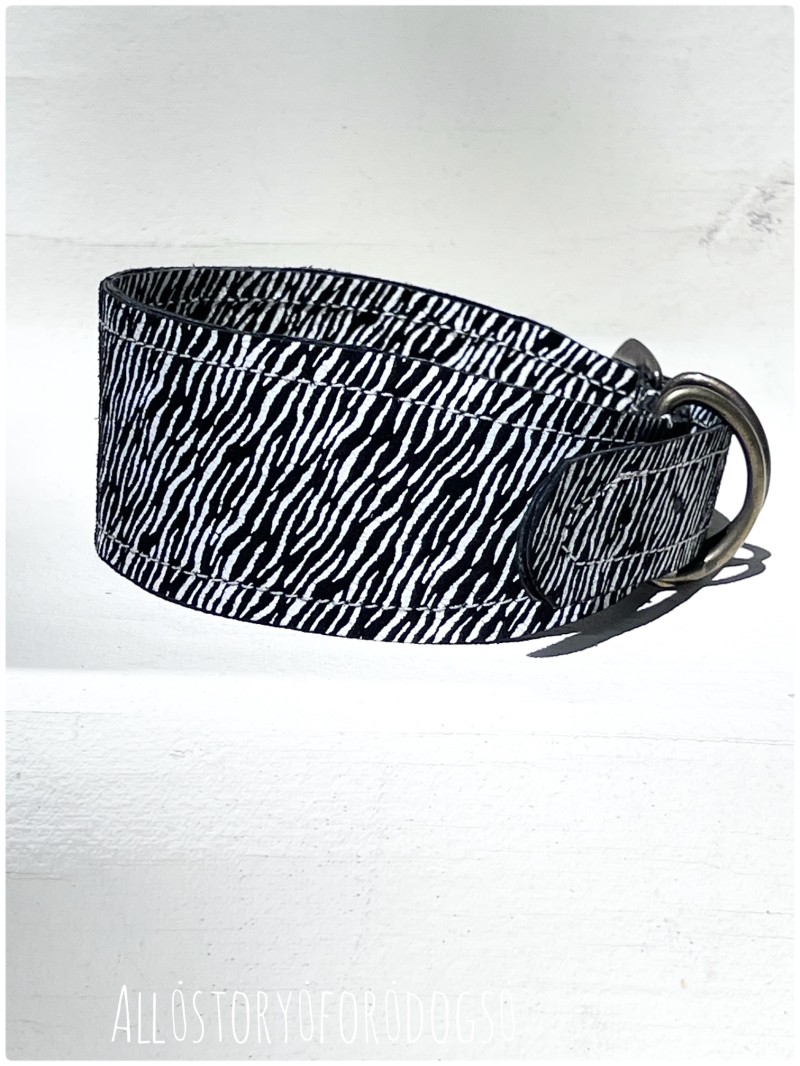 Styl glamour w wydaniu dla psa – ta elegancka obroża z naturalnej skóry w wyrazistym czarno-białym wzorze przyciąga spojrzenia i podkreśla unikalny charakter pupila. Wzór inspirowany modą haute couture sprawia, że każdy spacer zamienia się w wybieg.