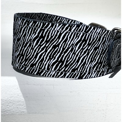 Styl glamour w wydaniu dla psa – ta elegancka obroża z naturalnej skóry w wyrazistym czarno-białym wzorze przyciąga spojrzenia i podkreśla unikalny charakter pupila. Wzór inspirowany modą haute couture sprawia, że każdy spacer zamienia się w wybieg.