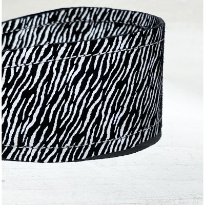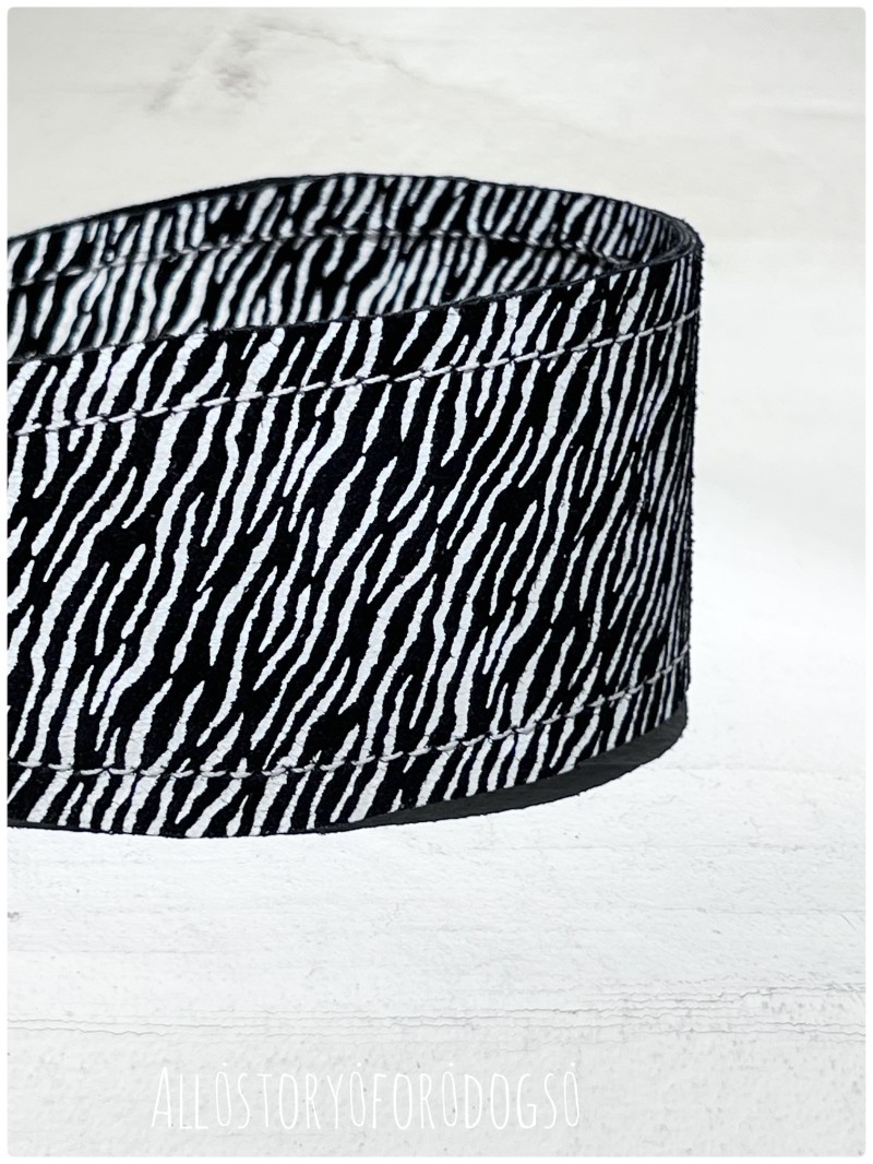 Obroża glamour z naturalnej skóry w czarno-białym wzorze, z okuciami stare złoto. Elegancki styl premium. Dostępna w wybranych rozmiarach – sprawdź